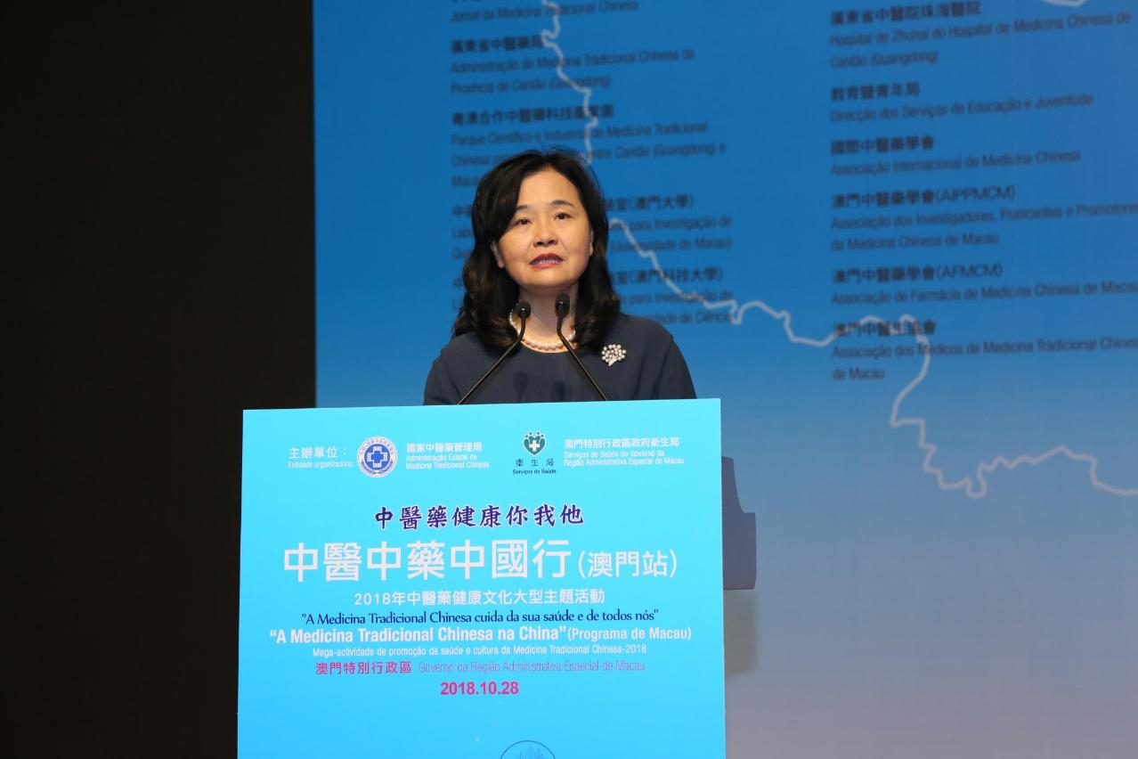 国家卫生健康委员会党组成员、国家中医药管理局党组书记余艳红致辞时表示,中医药作为优秀的传统文化和中华文明重要载体,不仅为中华民族繁衍昌盛作出了贡献,更对世界文明进步产生了积极影响。随着现代社会疾病谱和医学模式的转变,中医药越来越显示出其独特的优势和魅力,国际社会和民众越来越认可中医药的疗效,传播范围越来越广。中医药正逐渐由医疗服务转向融医疗、预防、保健、养生、康复于一体的方向发展,有更广阔的发展空间。中央政府高度重视中医药发展,近年出台了中医药法和中医药发展规划纲要。在中央和特区政府的高度重视和大力支持下,澳门近年在推动中医药现代化、国际化发展方面取得了一定成绩。她对澳门发展中医药提出三点希望:首先,希望澳门能充分发挥自由港、国际化都市和区域优势,助力粤港澳大湾区和一带一路建设;其次,充分发挥中医药的五种资源优势,完善澳门中医药发展的政策,推动澳门经济适度多元发展;第三,加强与内地中医药人才、科研、资源全面合作,不断提升澳门中医药医疗和学术水平以及创新能力。国家中医药管理局将继续支持内地与澳门开展中医药领域的交流与合作。