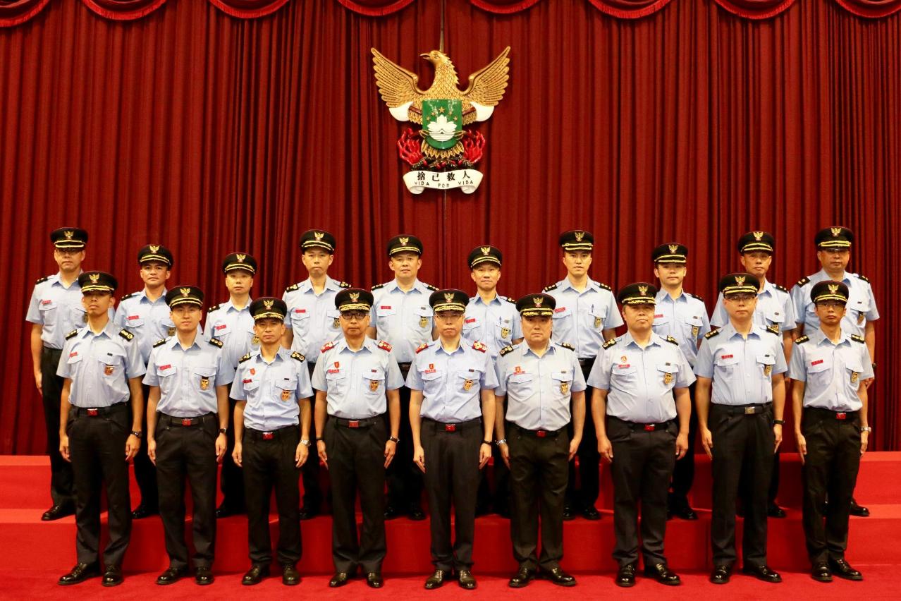 仪式上,梁毓森 局长与各领导及主管为获晋升之人员戴上新肩章,并送上热烈祝贺,以及勉励人员克尽己任,继续为市民提供优质服务。