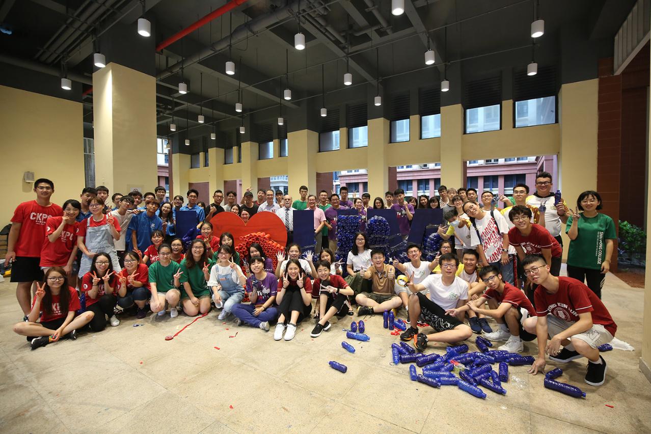 澳门大学组织学生用废弃的胶樽制作“I Love UM”装置艺术品,宣扬绿色校园的环保理念,以及提醒大众废物利用,加强环保意识。