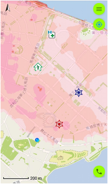 为让公众有更多途径获取澳门的应急信息,地图绘制暨地籍局在警察总局及地球物理暨气象局的支持下,推出《应急地图通》流动地图应用程序(App),让公众可透过手机取得全澳各级风暴潮警告下预期受影响地区、各个避险中心位置及紧急求助电话等重要信息。