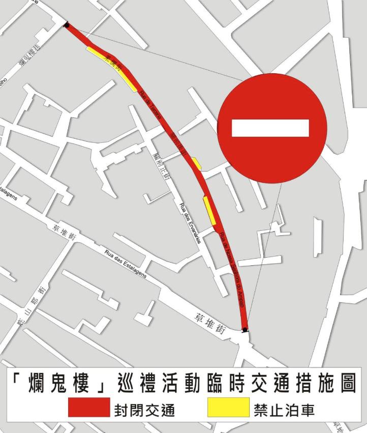 澳门历史城区发展促进会继续举办“烂鬼楼巡礼”活动,11月3日(周六)至25日(周日),逢周六、日下午1时至晚上7时,关前后街及介乎山麻雀围与烂鬼楼巷之间一段果栏街临时封闭交通,相关路段咪表泊车位、摩托车泊车位及上落客货区暂停使用,详情请查阅附表。