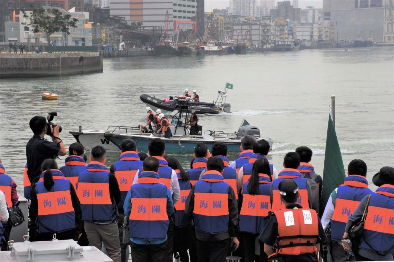 在交流活动环节后,海关安排人员向出席青年介绍最新购置的无人机装备,瞭解其在险要地势下如何发挥监察及救援等作用;海关船队亦在青洲对开海面安排出席者观看一场反偷渡演练,派出快艇及水上摩托车模拟追截及拯救偷渡人士。黄有力其后更带领一众青年,登上A级海关轮出海,进一步了解各种新型设备如何应用于实际工作,加深对海域管理工作的了解。