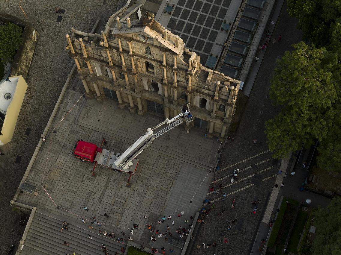文化局将在大三巴牌坊正立面进行除草及铜像检查工作