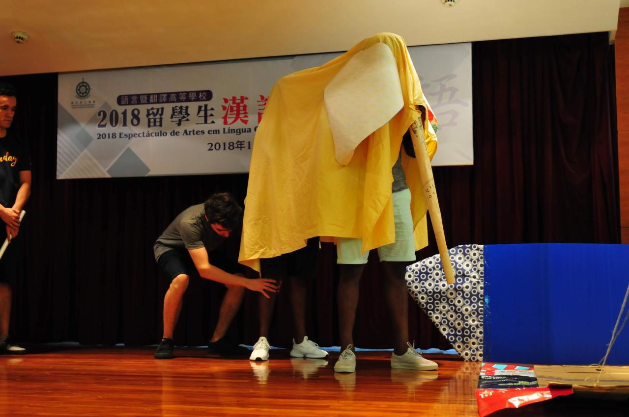 另外,“留学生汉语才艺汇演” 安排在汇智楼演讲厅举行,各年级的国际学生组织上台献艺,节目形式丰富,内容生动有趣,有小品、相声、诗歌朗诵等。其中二年级的学生集体合作表演了舞台剧“曹冲称象”;一年级的学生在小品“吃饭”中串演曲艺、诗歌朗诵;三年级的学生则用中葡文朗诵了葡萄牙着名诗人贾梅士的长诗《葡国魂》片段,现场气氛热烈。值得提及的是,一年级的国际学生以仅学了不到半年的中文表演小品,并串唱中文歌曲、诗歌朗颂。活动凸显了国际学生学习中文的积极态度,反映了理工提高国际学生中文水平的教学成效。