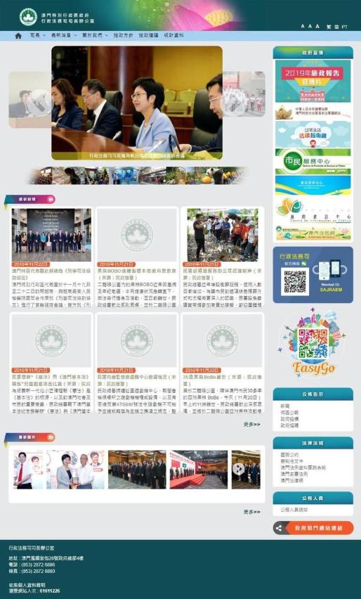 透过网站,市民可以了解行政法务司的组织架构、属下各部门的职能,最新消息动态等,亦可以就行政法务范畴的工作反映意见和提出改善建议,同时,网站会因应政府电子政务的推行,加入更多便利市民的元素,例如政府电子服务的相关链接,在原有功能的基础上作出优化,使相关工作能更贴近民意、更快速有效地回应市民诉求,推动电子政务发展。网站内亦提供政府入口网站(http://www.gov.mo)链接,方便市民查阅政府信息。
