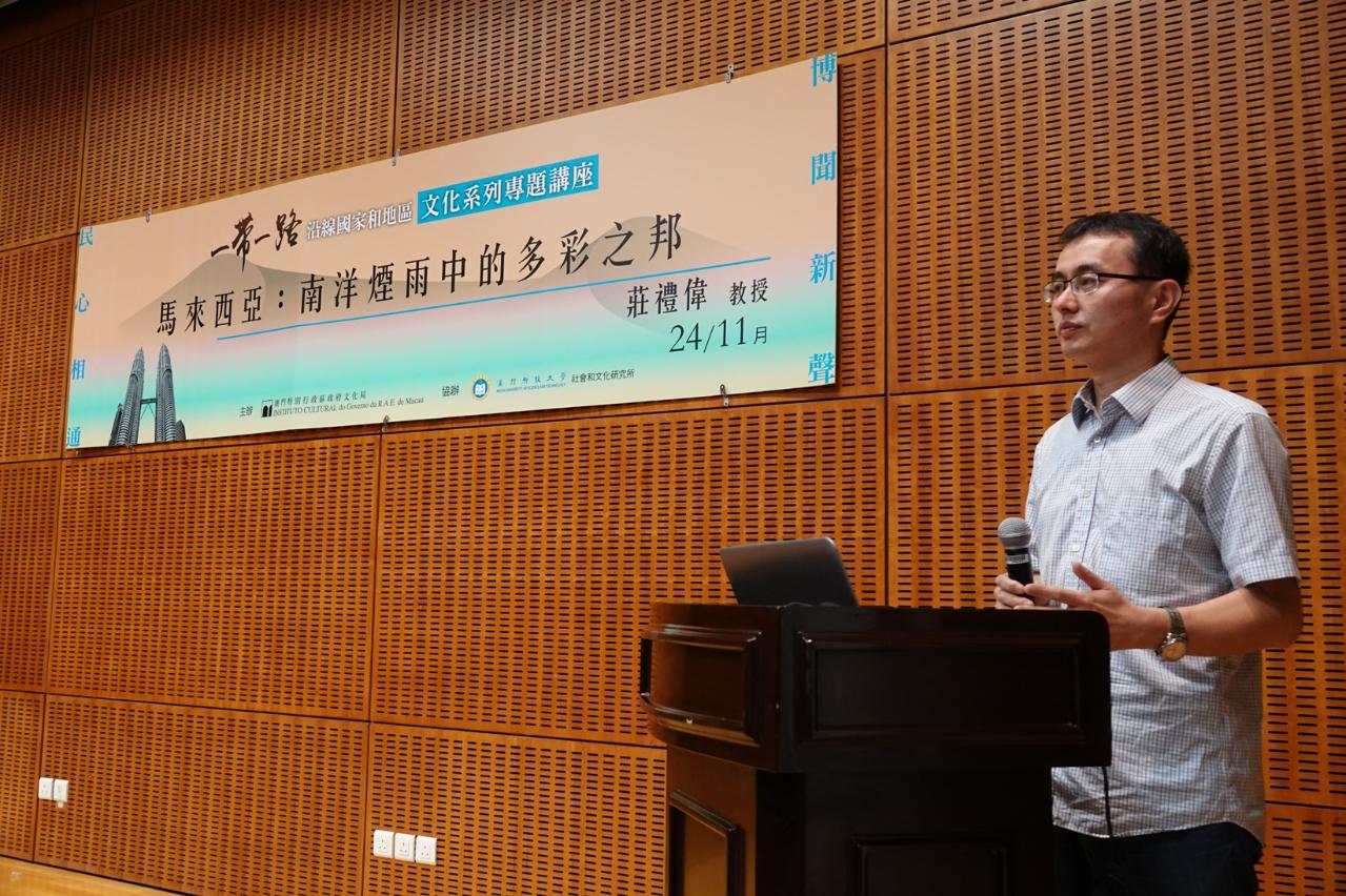 由文化局主办、澳门科技大学社会和文化研究所协办的“博闻新声 民心相通——一带一路沿线国家和地区文化系列专题讲座”第八场日前(11月24日)于澳门艺术博物馆圆满举行。讲座主题为“马来西亚:南洋烟雨中的多彩之邦”,由暨南大学东南亚研究所所长庄礼伟教授主讲。