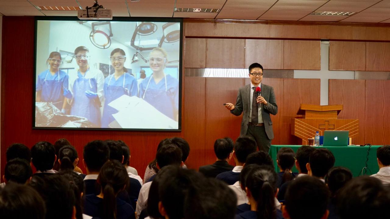 为促进本澳医疗事业发展、加强海内外从业人员之间的交流,人才发展委员会“海外人才回流行动考察计划”邀请哈佛大学医学博士、史丹福医学院主治医师叶汇回澳,与本澳医疗机构及高校探讨国际医疗技术的发展,并在培正中学举办医学科技新趋势分享会,与学子分享其生涯规划及介绍医学上的科技应用。