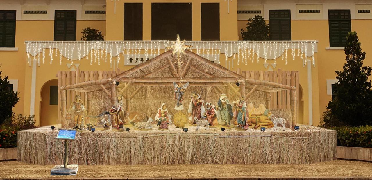 另外,民署大楼亦因应圣诞佳节作布置,大堂会展示出耶稣降生的马槽场景及其诞生地--伯利恒城市的剪影,配以象征该城市地势的岩坡,使游客仿如置身其中。而花园中央及左右两侧以红色、金色为设计重点,营造出独特而浪漫的节日气氛;中央花坛则以大型圣诞树为焦点,以天使、驯鹿等造型摆设,以及大量圣诞饰物作为衬托,丰富视觉效果。