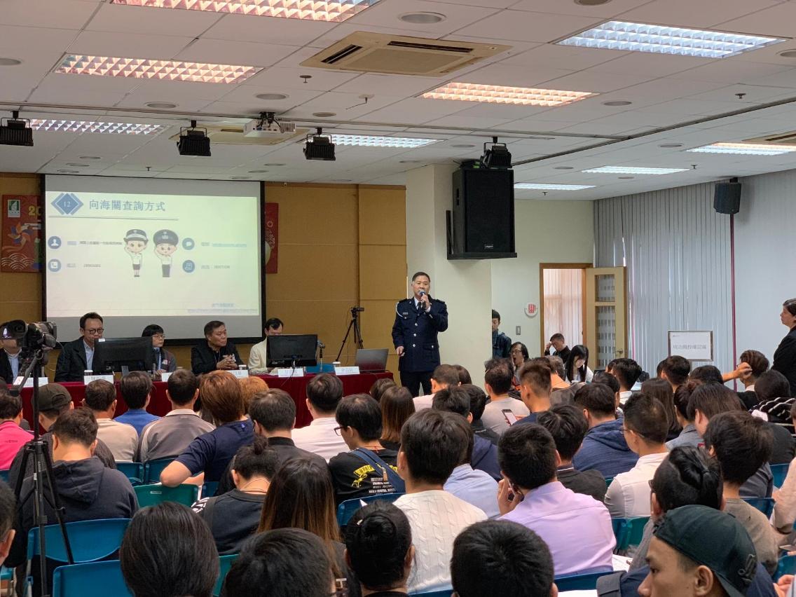 2019年春节年宵市场活动即将展开,澳门海关联同经济局向年宵摊位竞投人士进行宣传,讲解货物进出口流程及知识产权相关法例及规定。