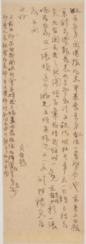 高剑父出生于广东番禺员冈乡,20世纪初就读于由广州迁到澳门的“格致书院”(岭南学堂),其作品曾参加1924年2月由澳葡政府举办的“中国艺术展览会”并获甲等奖项。在1930年11月赴印度出席“全亚细亚教育会议”同时,沿途举办中国绘画展览,并考察东南亚及南亚艺术。是次入藏的高剑父致容漱石信札,为前者于1930年至1932年期间足履印度、斯里兰卡、缅甸及不丹等地进行考察及写生时,向生活在粤港地区的容漱石讲述其所见所闻的函件,并附照片及当地对其报导文献,以透过容漱石转投香港及内地媒体发表,让人了解其游历见闻及对印度艺术的感受。作为岭南画派的创始人之一,高剑父探求艺术的过程对岭南画派有着深远的影响,此番游历可反映其对“折衷中外”的艺术追求。