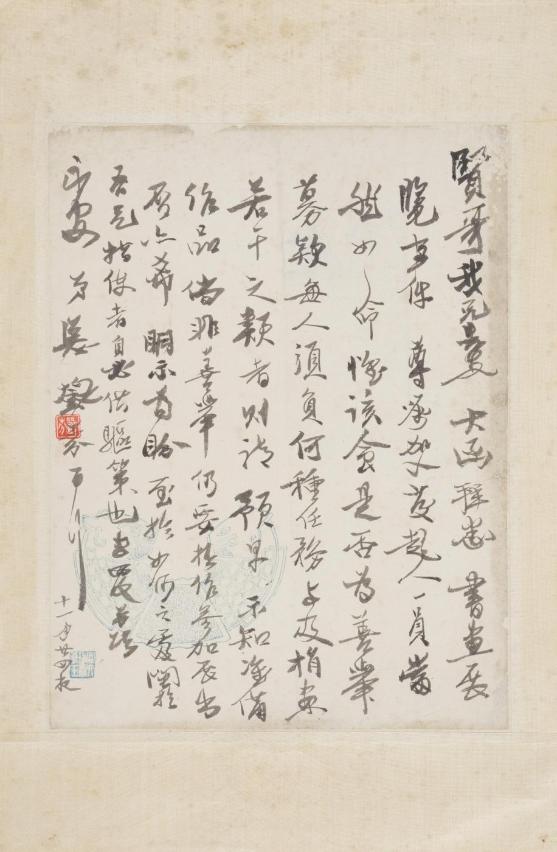 邓芬被认为是广东最富成就、极具特色的仕女、花鸟画家之一。其活跃于穗港澳艺坛及曲坛,1940年代曾寄居于澳门殷商卢煊仲的卢家花园、李民欣兄弟的亦缘阁及富商吴伟佳的大兴银号楼,后应商人李海昭、黄苏等人之邀迁居于淸平直街的寄闲俱乐部,并辟室“藕丝孔居”作画。抗战时往返广州,并于抗战结束后携家居澳,至1950年代初迁居香港,但仍频繁往来港澳。是次入藏则五十年代初邓芬致何贤述及参加画展一事之信札。
