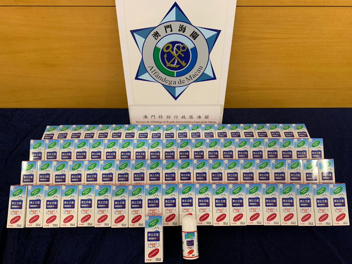海关接获消费者委员会一宗转介个案,一名消费者于中区某药房购入怀疑侵权驱蚊液,海关接获举报资料后,立即展开深入调查,确认相关品牌已于澳门特别行政区经济局注册登记受法律保护。海关于行动中查获81支怀疑侵权驱蚊液。