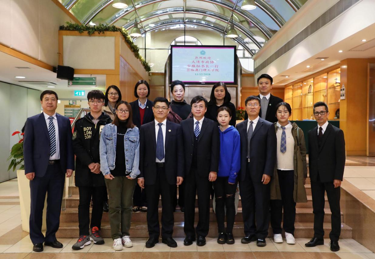 大连政协代表团在秘书长安旗的带领下,于2018年12月13日访问澳门理工学院,受到理工学院院长严肇基等的热烈欢迎,双方进行友好会谈,勉励在理工就读的大连学生珍惜在澳门学习机会,努力融入理工及澳门的文化,并配合国家发展与“一带一路”倡议的事业贡献力量。