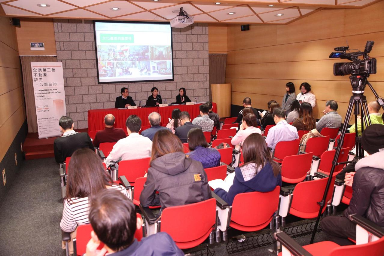 在三场公众咨询会上,市民及社会不同界别的团体与组织分别踊跃发表意见,具参考价值。《全澳第二批不动产评定》的公开咨询将于明年1月5日结束,文化局会继续听取社会意见,并把公开咨询期间所搜集的资料作为后续工作的参考。是次公开咨询的9个不动产项目分别为:更馆(沙梨头)、先锋庙、圣保禄学院遗址(围墙遗迹,高园街一段)、东望洋斜巷6号房屋、得胜马路30号房屋、穆萨家族房屋、圣味基坟场(旧西洋坟场)、原沙栏仔街市旧址(原泗口孟街市旧址)和嘉模墟(原氹仔市政街市旧址)。