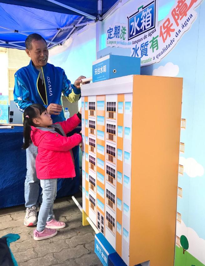 为加强推广海事安全及楼宇供水系统知识,海事及水务局今日假筷子基绿杨花园休憩区举办“海安全‧水优质”社区巡礼,透过摊位游戏、工作坊、话剧等方式,让市民深入浅出地认识澳门海事和水资源状况,并提高市民维护管理楼宇自来水系统的意识。