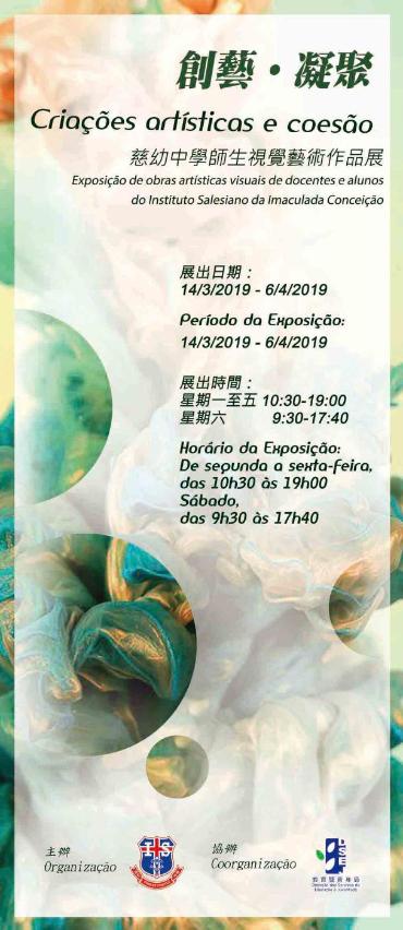 慈幼中学将于2019年3月14日至4月6日在教育暨青年局辖下教育资源中心子瞻廊举办“创艺•凝聚”师生视觉艺术作品展,欢迎市民参观指导,见证师生的创意成果。