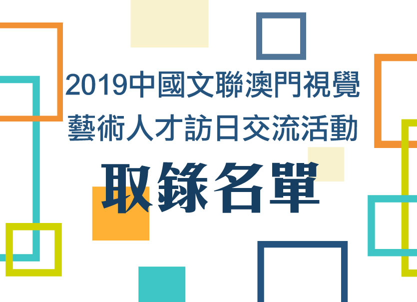由中国文联港澳台办公室、澳门基金会、中国文学艺术基金会及中国文联文艺研修院联合主办之“2019中国文联澳门视觉艺术人才访日交流活动”取录名单已公布于澳门基金会网页(https://www.fmac.org.mo/activity/activityContent_8462)。