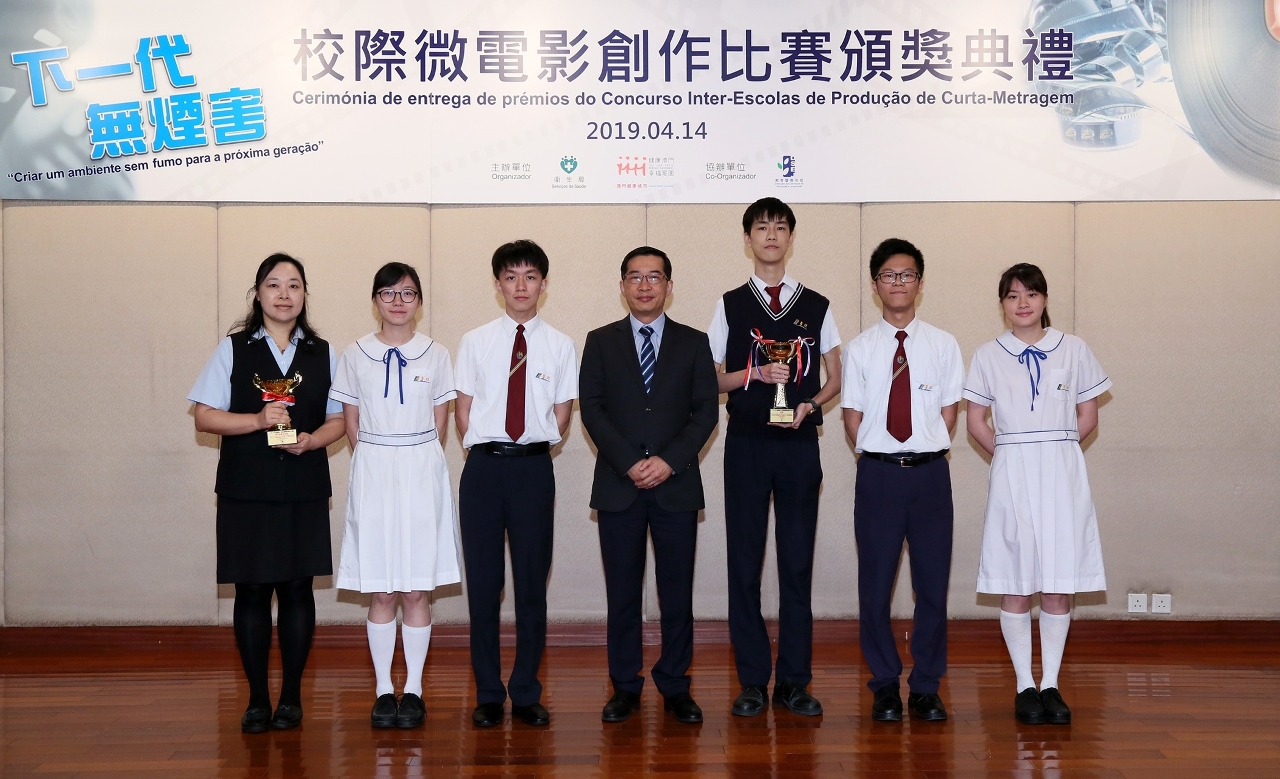 由卫生局主办、教育暨青年局协办的「下一代 无烟害」校际微电影创作比赛,在历时近半年的筹备与竞赛后,于今(4月14日)举行颁奖礼。是次颁奖礼邀请到卫生局郑成业副局长、文化局文化创意产业促进厅何鸿斌厅长、教育暨青年局社会暨教育辅助处薛荣滔处长,及澳门五洲影视艺术文化协会余美笑会长作为主礼嘉宾。出席者还包括各参与学校代表、指导老师及支持参赛队伍的同学和青年朋友,现场气氛热闹。