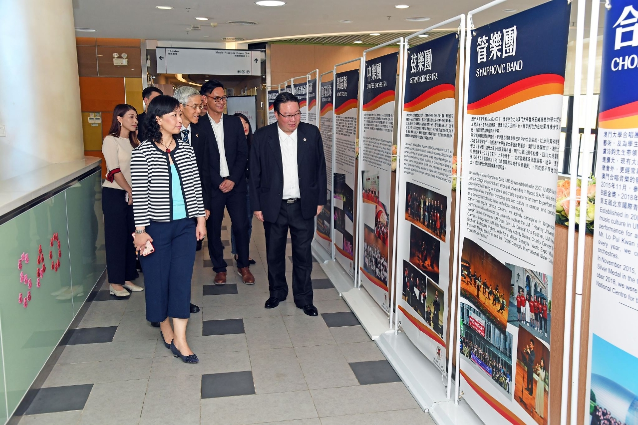 穆欣欣在澳门大学副校长苏基朗、学生事务部学生事务长彭执中、澳门大学体育事务部总监周桂慈、学生资源处兼副校长(学术)特别助理处长张学森、学生辅导处处长苏桂龙及学生发展处处长姚秀丽等的陪同下,首先参观了学生活动中心设施,同时聆听学生会代表介绍会务概况、日常运作和最新活动资讯,对该校学生的课余生活增进瞭解。