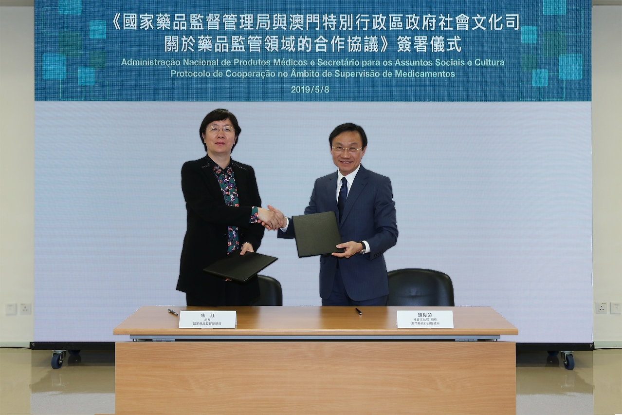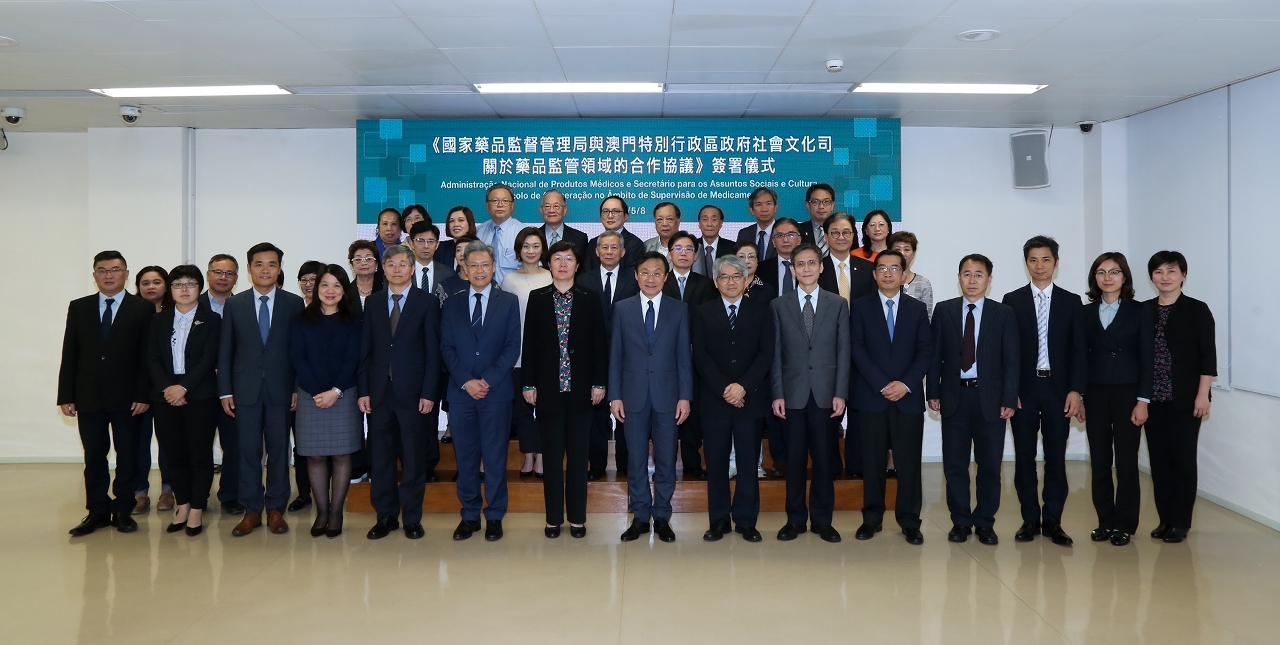国家药品监督管理局与社会文化司签署关于药品监管领域的合作协议于今日(5月8日)举行,社会文化司谭俊荣司长、国家药品监督管理局焦红局长率领代表团、卫生局李展润局长及多位卫生局领导层等出席了仪式。