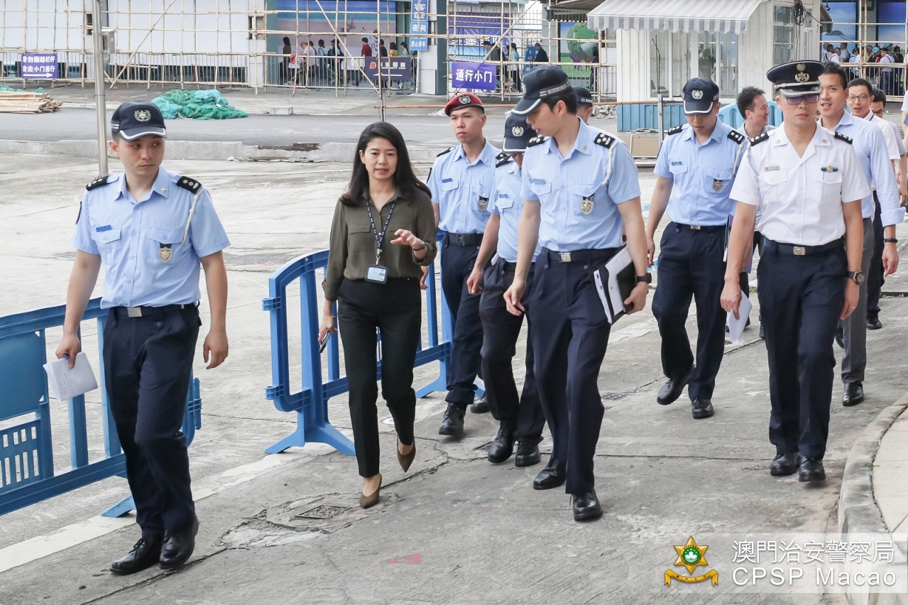 于工程首日,刘运嫦副局长与辖下多个部门的主管,联同海关及保安部队事务局代表,到关闸出入境事务站实地了解出境人流的情况,并视察多项临时疏导措施的执行情况。其中,为有效疏导出境高峰期之人流,治安警察局与多个部门经商讨后,将于工程期间,每天下午四时至晚上八时,利用部份出境车道的位置加开五条临时人工离境通道,务求尽快疏导人潮。与此同时,治安警察局与珠海边检总站人员已做好沟通并保持紧密合作,应对工程期间可能出现的通关压力,全力确保人流秩序及通关安全。