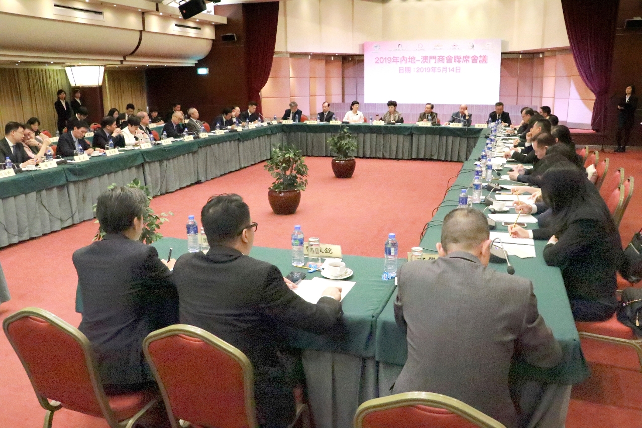 “2019年度内地-澳门商会联席会议”于昨(14)日假澳门世界贸易中心五楼莲花厅举行,两地数十名贸促机构及商会的代表参加会议,就发挥澳门平台作用、深化两地经贸交流、共同融入粤港澳大湾区建设等议题展开交流及探讨。