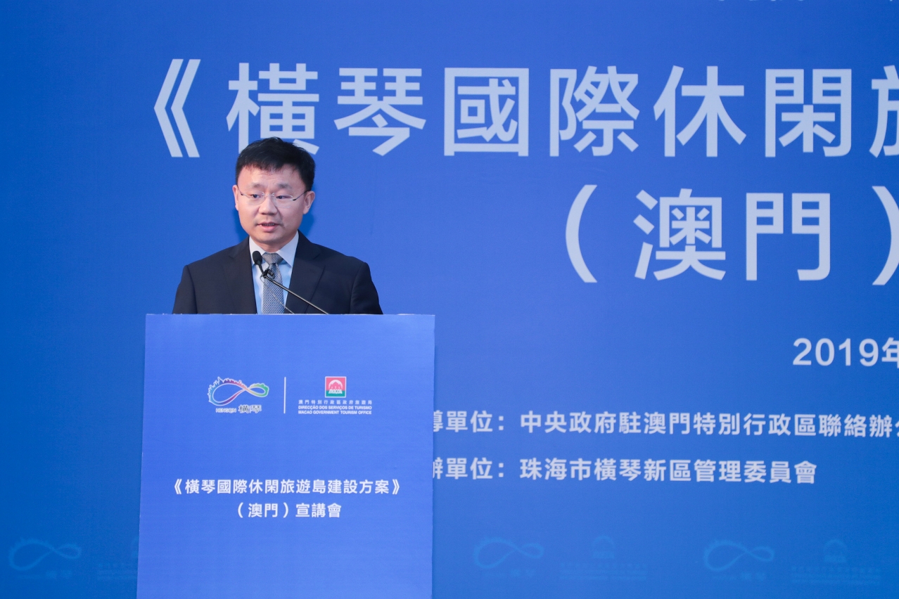 《横琴国际休闲旅游岛建设方案》(简称:《建设方案》) 澳门宣讲会今(16日)在澳门举行,由国家发展和改革委员会社会发展司以 “建设横琴国际休闲旅游岛 助力打造粤港澳世界级旅游大湾区” 为题作专题宣讲。