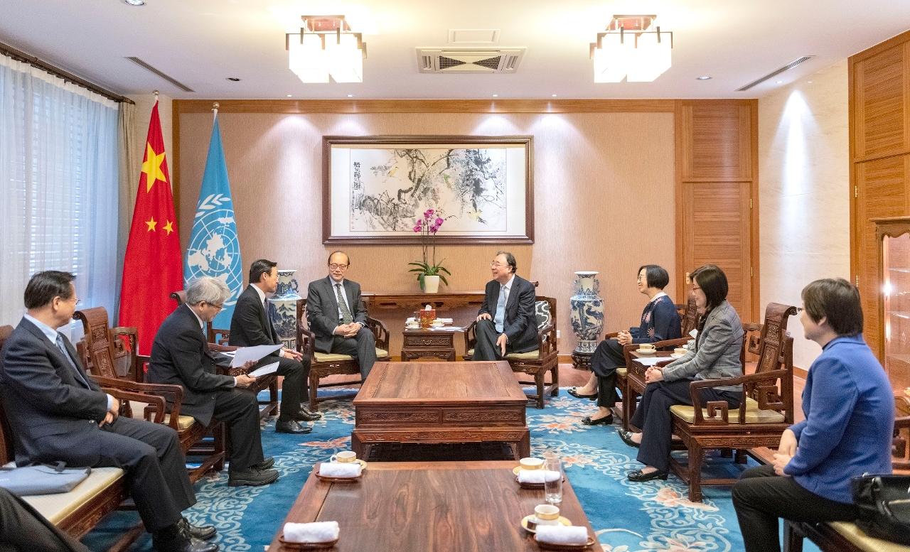 社会文化司司长谭俊荣19日于第七十二届世界卫生大会举行前夕,在瑞士日内瓦与国家卫生健康委员会主任马晓伟以及中国常驻联合国日内瓦办事处和瑞士其他国际组织代表团特命全权大使、常驻代表陈旭会晤,参加的还有香港食物及卫生局局长陈𦘦始。