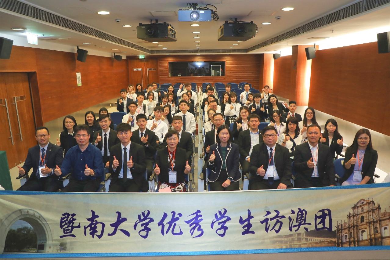 为加强粤港澳大湾区高等教育的交流和合作,增进粤澳两地大学生的相互了解和友谊,暨南大学优秀学生访澳团一行四十四人,由副校长饶敏带领,澳门暨南大学校友会人员陪同,五月二十二日到访澳门理工学院,受到副院长李雁莲等热情接待。访问团参观了理工学术设施并听取了办学介绍,与理工学生进行座谈交流,气氛融洽活跃。