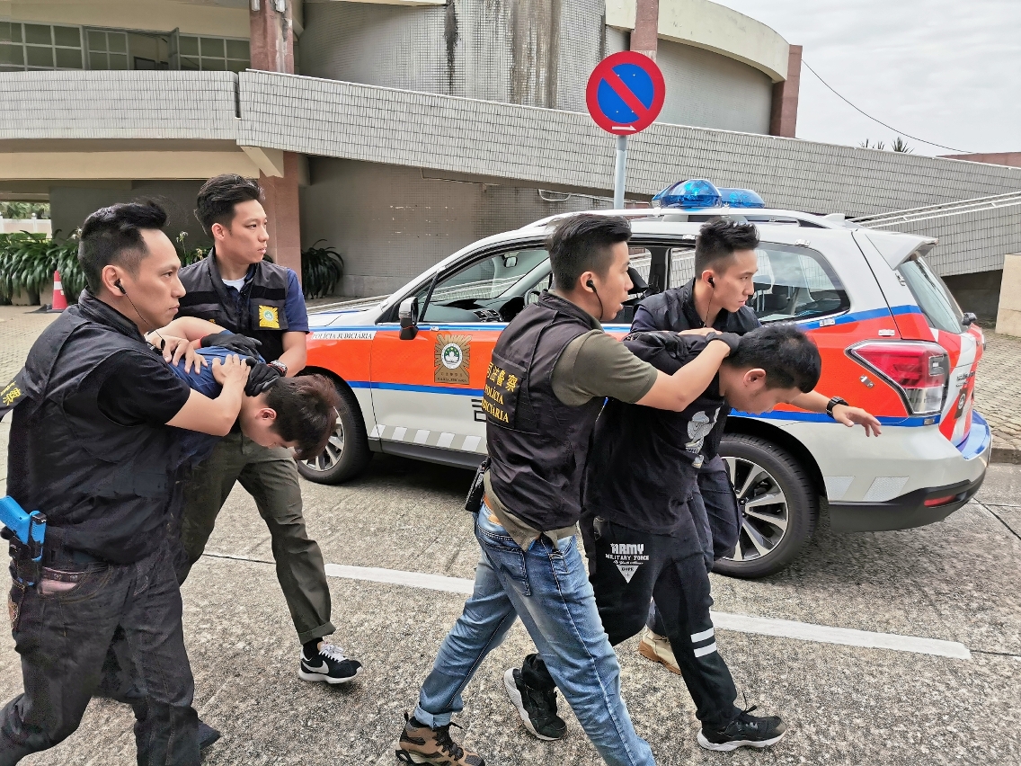 演习模拟司警局刑侦人员驾驶警车执行巡逻任务,途经路环黑沙海滩附近时,发现有5名男子正在偷偷登岸,怀疑他们为非法入境者,遂上前进行调查。5人见状立即朝黑沙青年旅舍方向逃跑,其中2人被刑侦人员当场拘捕,另外3人则闯入青年旅舍,当时正有约40名青少年在旅舍内进行宿营活动,3人胁持了在休息区的30名青少年;司警局刑侦人员赶至,立即疏散另外10名在活动区的青少年至安全地方,并包围现场,同时向报案及紧急行动中心报告,要求派员增援。