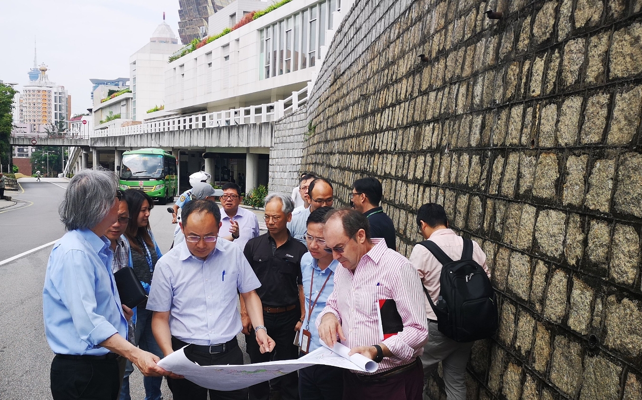 政府跨部门代表及多名市政咨询委员会成员早前巡视松山一段道路及赛车跑道周边护土墙,瞭解跑道沿途各处斜坡的变化和状况,并就护土墙之维护方案发出技术意见,及提出多项改善措施。