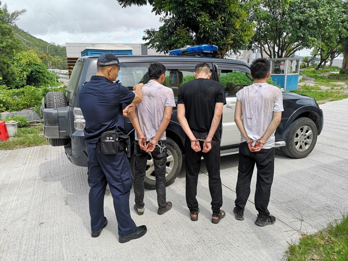 22日清晨,广东海警透过「点对点联勤协作机制」向澳门海关通报,在路环九澳深水港附近海面发现可疑船只,怀疑正进行非法出入境活动。海关接报后立即调派巡逻船艇及关员进行堵截,沿岸巡逻关员成功于九澳沿岸截获5名怀疑非法入境者,经关员初步调查,怀疑有非法入境人士在逃,海关与治安警察局立即启动“反偷渡工作联防机制”合力搜捕,其后关员于九澳圣母村附近先后再截获4名怀疑非法入境者。在是次反偷渡行动中,合共拘捕9名怀疑非法入境者。