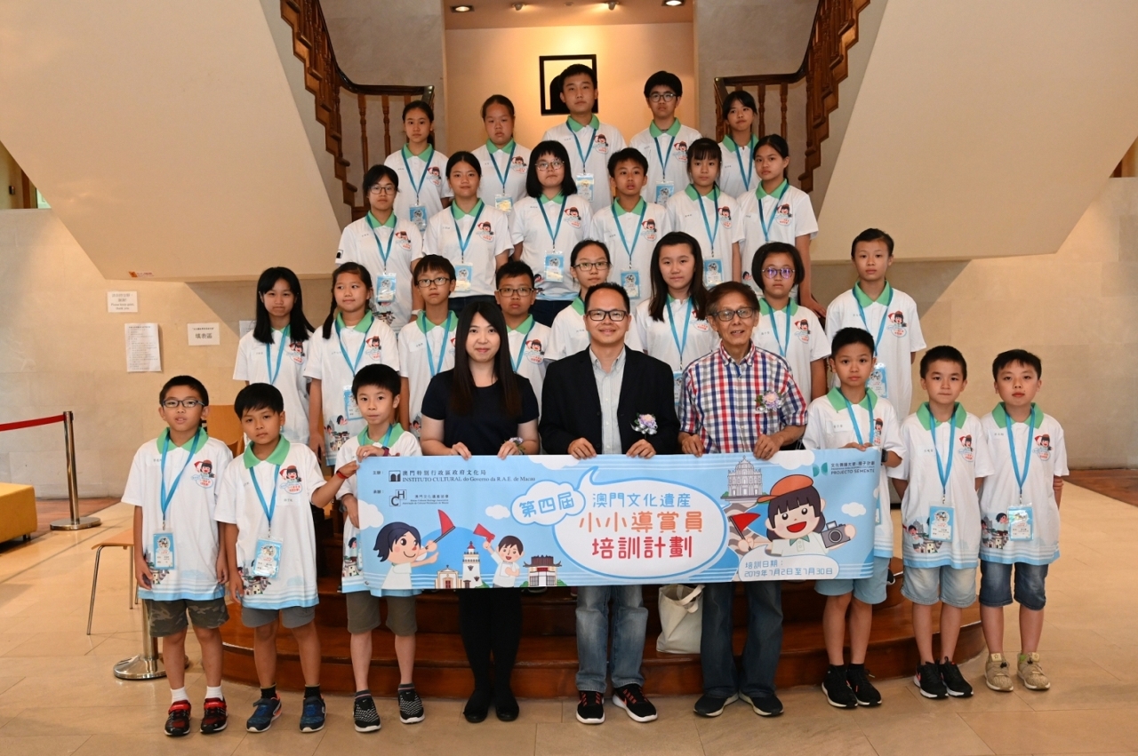 文化局主办、澳门文化遗产协会承办的“第四届澳门文化遗产小小导赏员培训计划”于今天(7月2日)举行开学礼,由文化局文化遗产保护处代处长林继垣、澳门文化遗产协会副理事长李雪芬及资深歴史学者陈树荣主持典礼。
