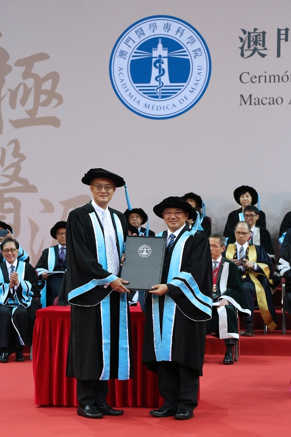 他强调,医学专科学院的工作任重道远,对未来制定本澳长远的医疗发展政策及专科医生人才发展策略、推动本澳专科医疗服务发展起着重要作用。期望通过医学专科学院的成立,优化医生专业发展之路,进一步明确专科培训的改革与发展的新蓝图,日后完成专科培训的医生不论投身公立、私立医院或私人执业市场,其资格均源自同一套严谨且与国际采用的专科培训制度标准,配合未来离岛医疗综合体的落成、《医疗人员专业资格及执业注册法律制度》的推行,在软硬件上进一步提升本澳医疗服务的素质。最后,他亦勉励众医生在自身专业领域贡献所长,笃志力行,将精湛的医术及丰富的行医经验传承给后辈,共同为本澳居民的健康而努力。
