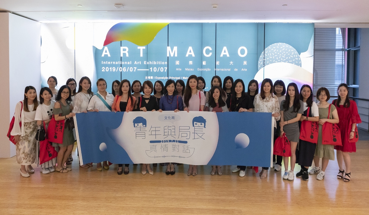 为让市民大众感受大型国际综合性文化艺术盛会“艺文荟澳”多姿多彩的节庆氛围,同时提升青年人对澳门文化事业发展的瞭解,文化局日前(7月21日)举办“青年与文化局局长真情对话"活动,以“感受文化艺术之美”为主题,邀请澳门妇联青年协会近30名会员与文化局局长穆欣欣交流互动,共同参观“艺文荟澳”部分精彩展览,开启了一场精彩纷呈的品味艺术之旅。