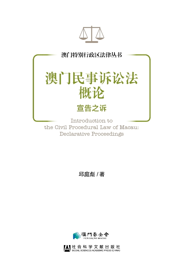 “澳门特别行政区法律丛书”之一、由邱庭彪所着的《澳门民事诉讼法概论──宣告之诉》,经已由澳门基金会与社会科学文献出版社联合出版,并于全国包括澳门地区同时发行。该书以民事诉讼程序中的宣告之诉为主题,介绍澳门民事诉讼法、民事诉讼原则以及保全措施等方面。