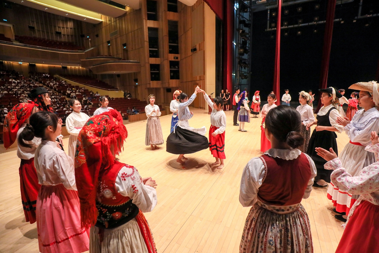 闭幕礼上,葡萄牙驻澳门及香港总领事馆总领事欧冠溢、澳大葡文系副教授、葡语课程统筹人Ana Nunes分别致词。一众学员在台上以葡语朗诵和音乐歌唱,更穿上色彩丰富的民族服装,手挽手演绎传统的土风舞。来自韩国的学员Seong Seon Min认为,密集式的葡语教学内容实用,令他在短时间内大大提升葡语写作及听说能力,他表示明年也有意继续报读。修读基础班的胡文建表示,课程师资优秀,授课老师都是来自葡语系国家的教师,他们在发音纠正上会循循善诱。他会向朋友推荐这个课程,希望下一届一起报读。另一位学员张璐颖修读今届高级班,她认为澳大提供一个良好的学习葡语氛围,而且能结交来自世界不同地方的学员,彼此互相交流和学习。今届课程吸引来自中国内地、澳门、香港、台湾、韩国、日本、马来西亚、菲律宾、新加坡、意大利、英国、巴西和美国等地的学生参与。