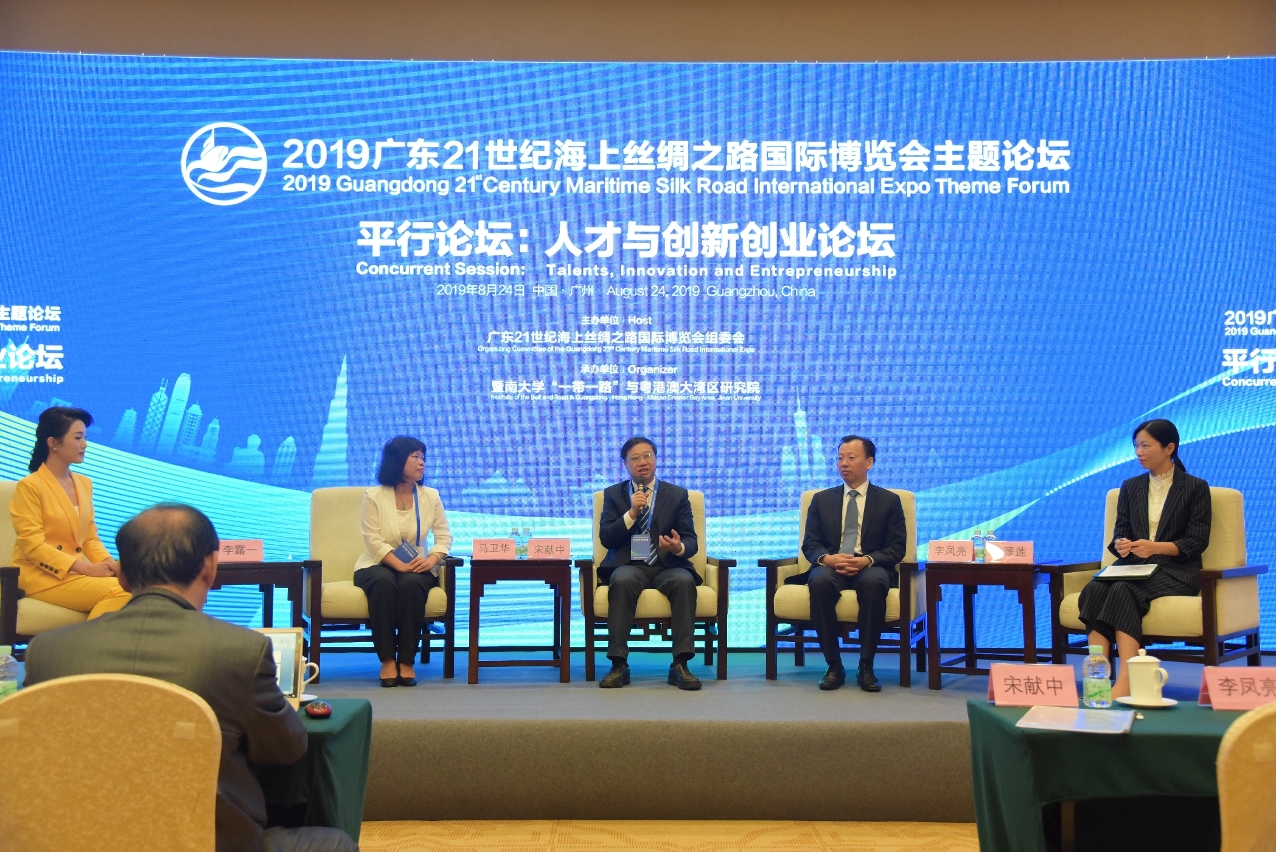 2019海丝博览会主题论坛平行论坛“人才与创新创业论坛”日前在广州白云国际会议中心举行。 暨南大学校长宋献中、南方科技大学副校长李凤亮、华南师范大学副校长马卫华、澳门理工学院副院长李雁莲等粤港澳三地知名大学校领导围绕“一流大学与一流湾区”主题展开对话,就粤港澳大湾区建设过程中大学的角色与作用、大湾区教育合作与人才流动、大学科研成果转化与高水准创新创业进行交流,充分发挥好两岸三地高校在科研合作、人才培养、创新创业等方面的作用,为大湾区建设培养高质量的人才队伍。