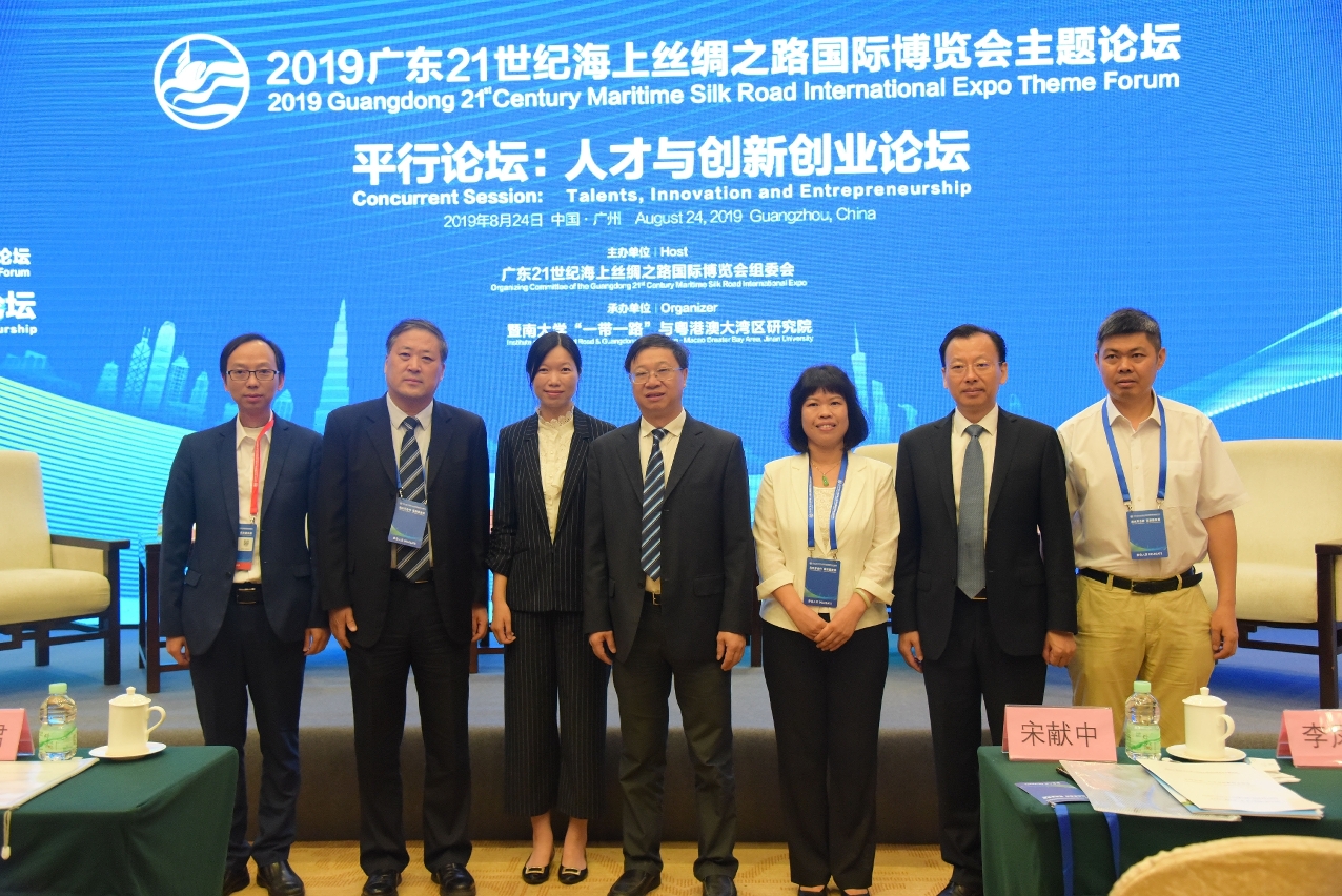 海上丝绸之路博览会主题论坛是广东省政府为深入贯彻落实国家“一带一路”倡议而打造的高端经贸交流合作重要平台,自2015年起已连续在广州举办了四届。今年的“人才与创新创业论坛”由暨南大学“一带一路”与粤港澳大湾区研究院承办,中联部原副部长于洪君、暨南大学原校长胡军、汇桔集团董事长谢旭辉和广州睿帆科技有限公司华南区总经理邓伟分别作论坛主旨演讲。澳门理工学院人文及社会科学高等学校代校长林发钦等出席了论坛。