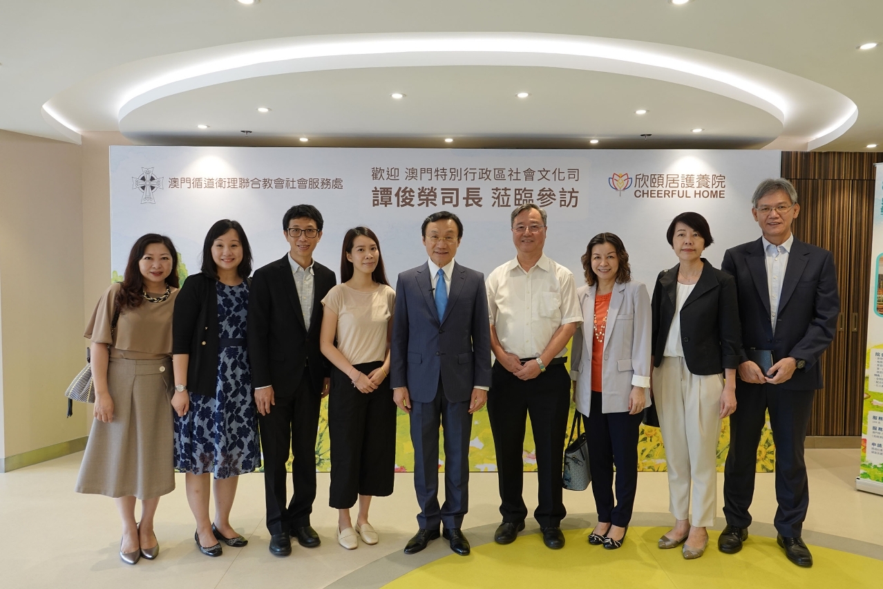 谭俊荣一行首先视察即将于本年第四季投入服务欣颐居护养院,该院位于氹仔东北大马路社屋日升楼,由社会工作局资助,澳门循道卫理联合教会社会服务处负责运作,投入使用后可提供144个服务名额,令本澳安老院舍宿位增至约2400个。