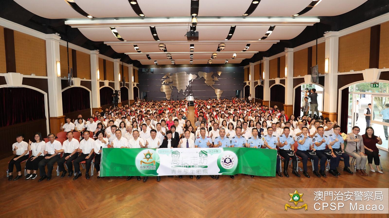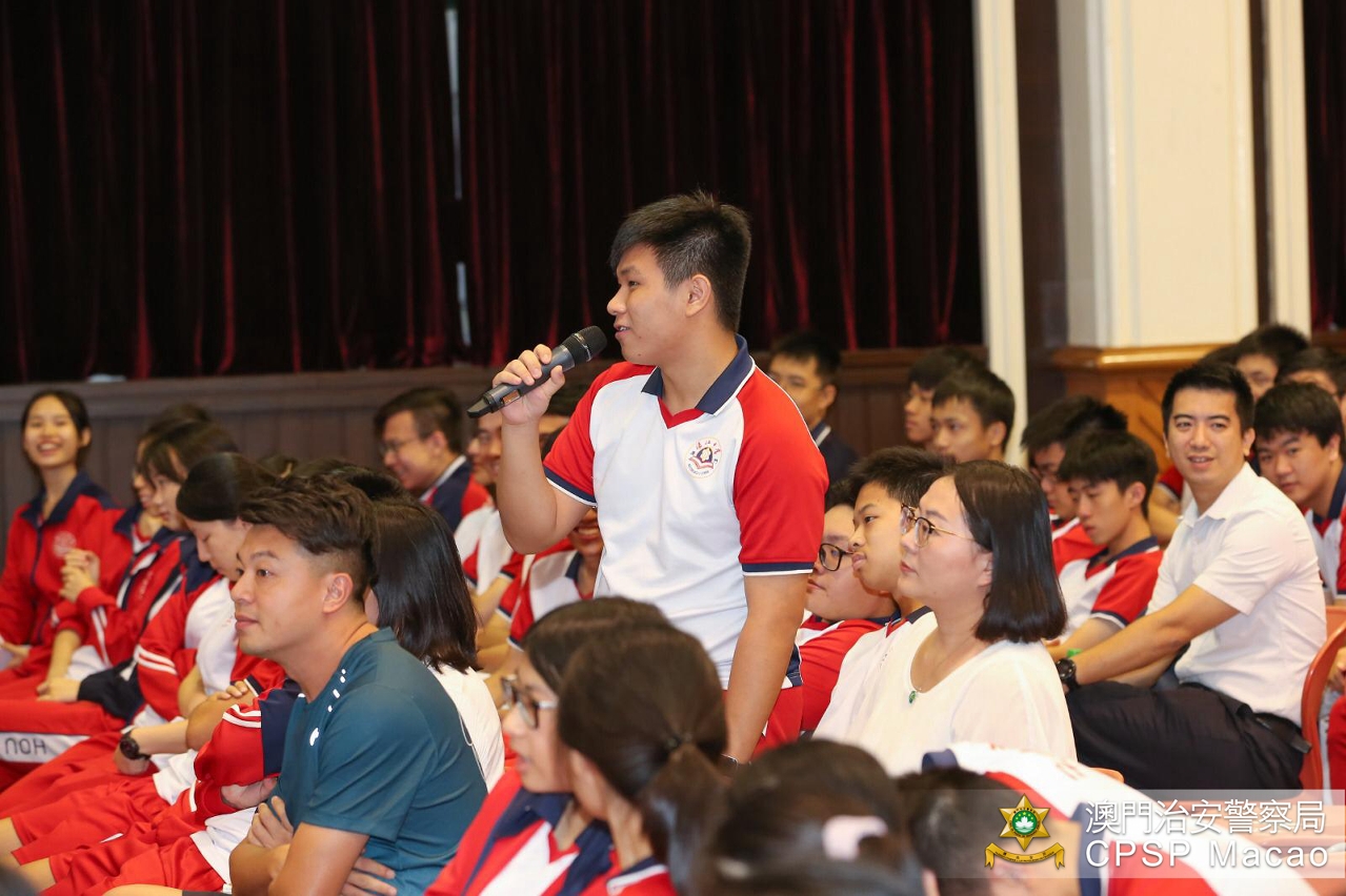 治安警察局梁文昌局长于9月23日上午拜访濠江中学与师生们见面,以“携手卫家园”为主题与学生真情对话,勉励他们努力学习、服务社会,透过交流让他们更认识警察的工作和使命。