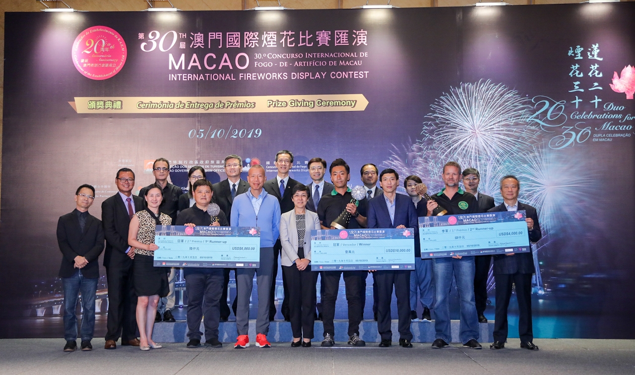 主题为“莲花二十 烟花三十”的第30届澳门国际烟花比赛汇演于今(5日)晚上圆满闭幕,12支实力相当的烟花队竭尽全力,争取入选三甲。来自日本的株式会社 丸玉屋小胜烟火店夺冠,来自中国的浏阳市新年烟花贸易有限公司及法国的SAS BREZAC烟花公司分别夺得亚军及季军。