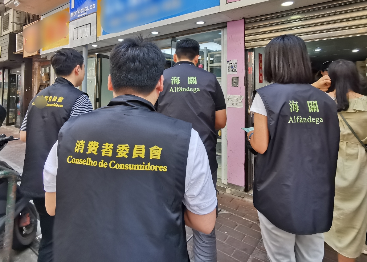 十‧一国庆黄金周假期前后,大量旅客来澳观光旅游。为保障消费者权益,维护澳门旅游城市的形象,澳门海关联同经济局、卫生局及消费者委员会等多个部门,在各区旅游景点及酒店附近加强巡查及宣传,以预防及打击贩卖侵权产品的活动。