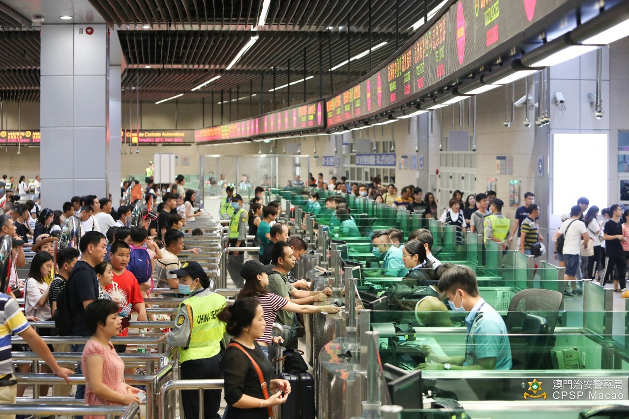 出入境方面,由10月1日至7日,经本澳各出入境事务站出入境的总人次录得超过400万,较去年同期增加了6%,入境访澳旅客则有98.4万人次,增幅达10%,10月5日当天全澳有超过32.9万人次出境,刷新了单日出境的历史纪录。关闸出入境事务站七日内有超过300万人次出入境,按年增5%,当中10月5日单日达25.6万人次出境,改写了关闸出入境事务站单日的出境纪录,同时出入境总数达47.9万人次,亦是该事务站历年来第二高,而路氹城出入境事务站七日内有29.1万人次出入境,按年增2%,连同港珠澳大桥出入境事务站的23.4万人次,三个主要陆路出入境事务站占了全澳出入境总量的88%;“黄金周”期间空中交通同样畅旺,有16.4万人次经澳门国际机场出入境,与去年同比上升16%;受多方因素影响,外港码头及氹仔码头的出入境人流按年减少了49%及29%。入境旅客方面,来自内地的入境旅客均有显着上升,较去年增加9%至79.8万人次。总结本澳在“黄金周”的出入境情况符合预期,各出入境事务站基本保持畅通。