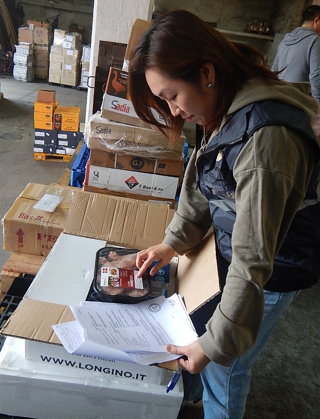 鲜活食品或动物源性食品进口本澳后,有关产品必须申报、接受强制性检验检疫,并提交来源地官方发出的卫生证明文件,以确保产品受来源地监管。而肉类当中以冰鲜肉的监控要求最多,由于一般是即日屠宰后送澳,并受售卖天数局限,须确保整个运输过程均在冷链下进行,市政署人员会查核运输车铅封号、卫生证明文件、产品包装资讯及车辆温度,以确保运输过程符合要求。