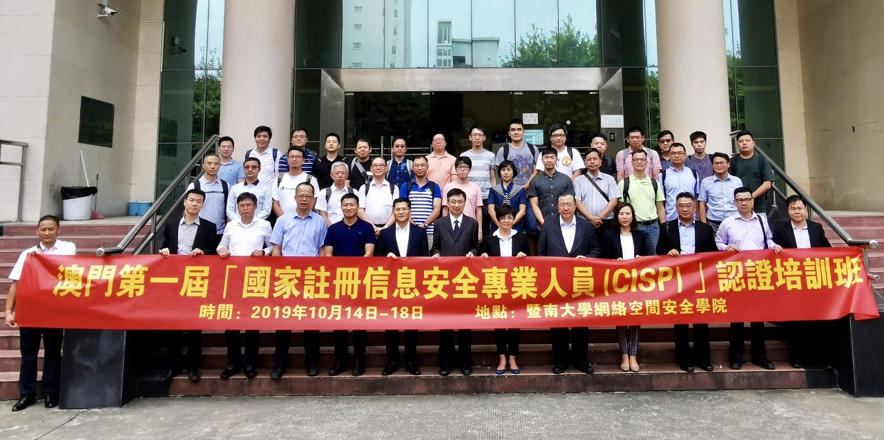 由邮电局和科学技术发展基金联合主办、澳门生产力暨科技转移中心承办,并获中国信息安全测评中心认证的澳门第一届「国家注册信息安全专业人员(CISP)认证」培训班,于本年10月14日至10月19日在广州暨南大学举行。本次培训班是内地与澳门科技合作委员会电子及信息技术与产业工作组的年度重点工作计划之一。