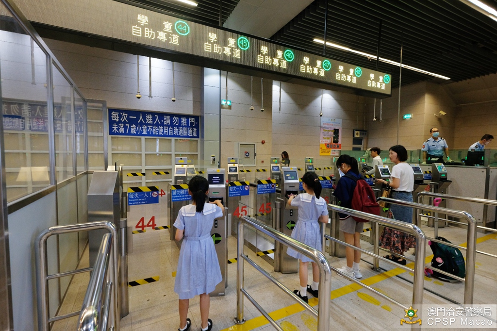 治安警察局自今年9月30日起,将澳门居民及内地居民使用自助过关系统的年龄,由过往满11周岁下调至满7周岁;同时在关闸出入境事务站的学童专用通道开放时间(早上六时至八时半于入境大堂、下午四时至六时于出境大堂)亦设置了适量的学童自助专道。治安警察局梁文昌局长在接受采访时表示,学童自助专道自实施至今,使用的效果良好,有效分流人工通道的人流。