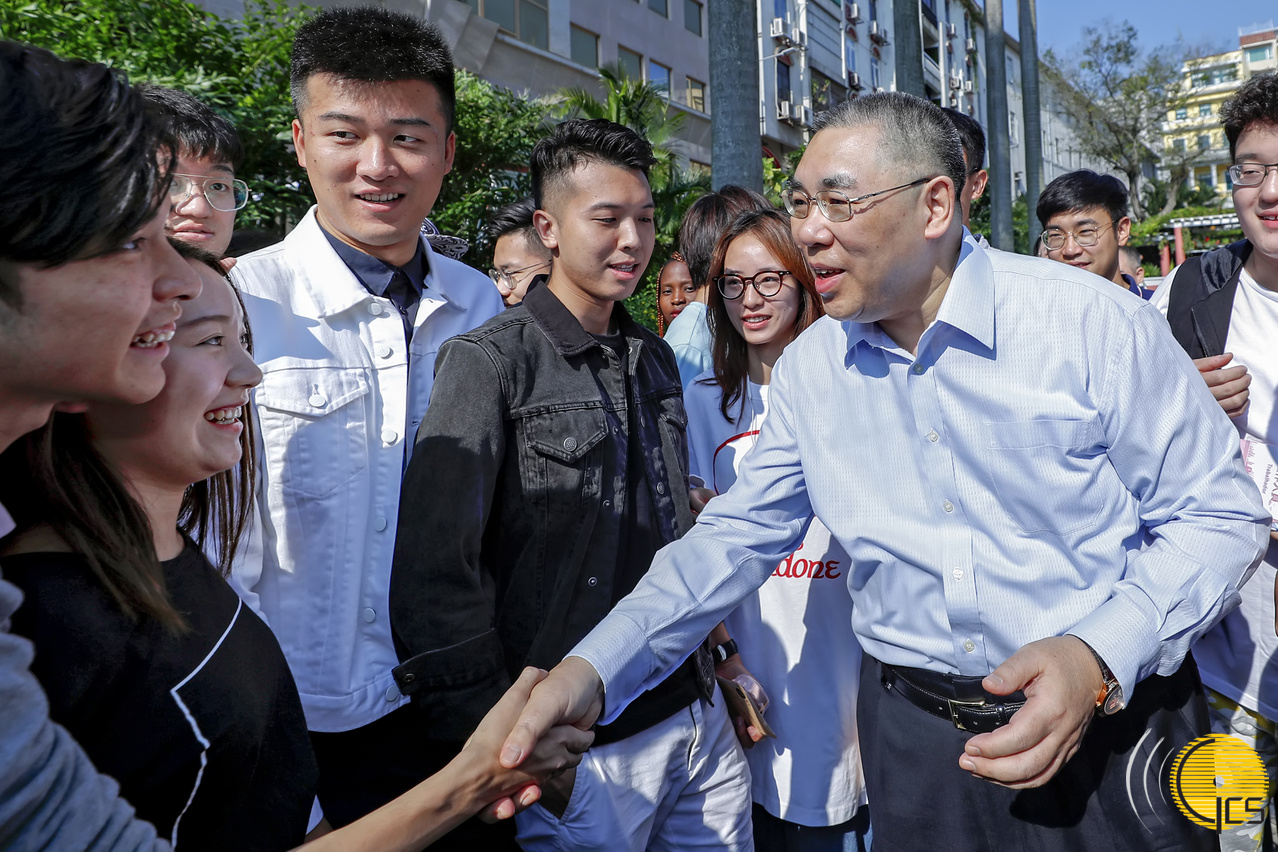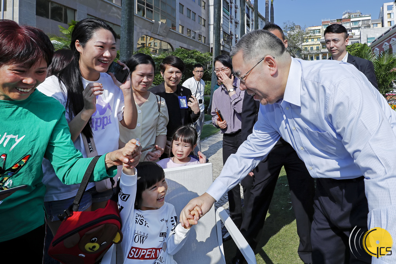 澳门特别行政区政府总部今(19)日起一连两天对外开放,行政长官崔世安今早回到政府总部接待到访的居民及游客,亲切交流合影。