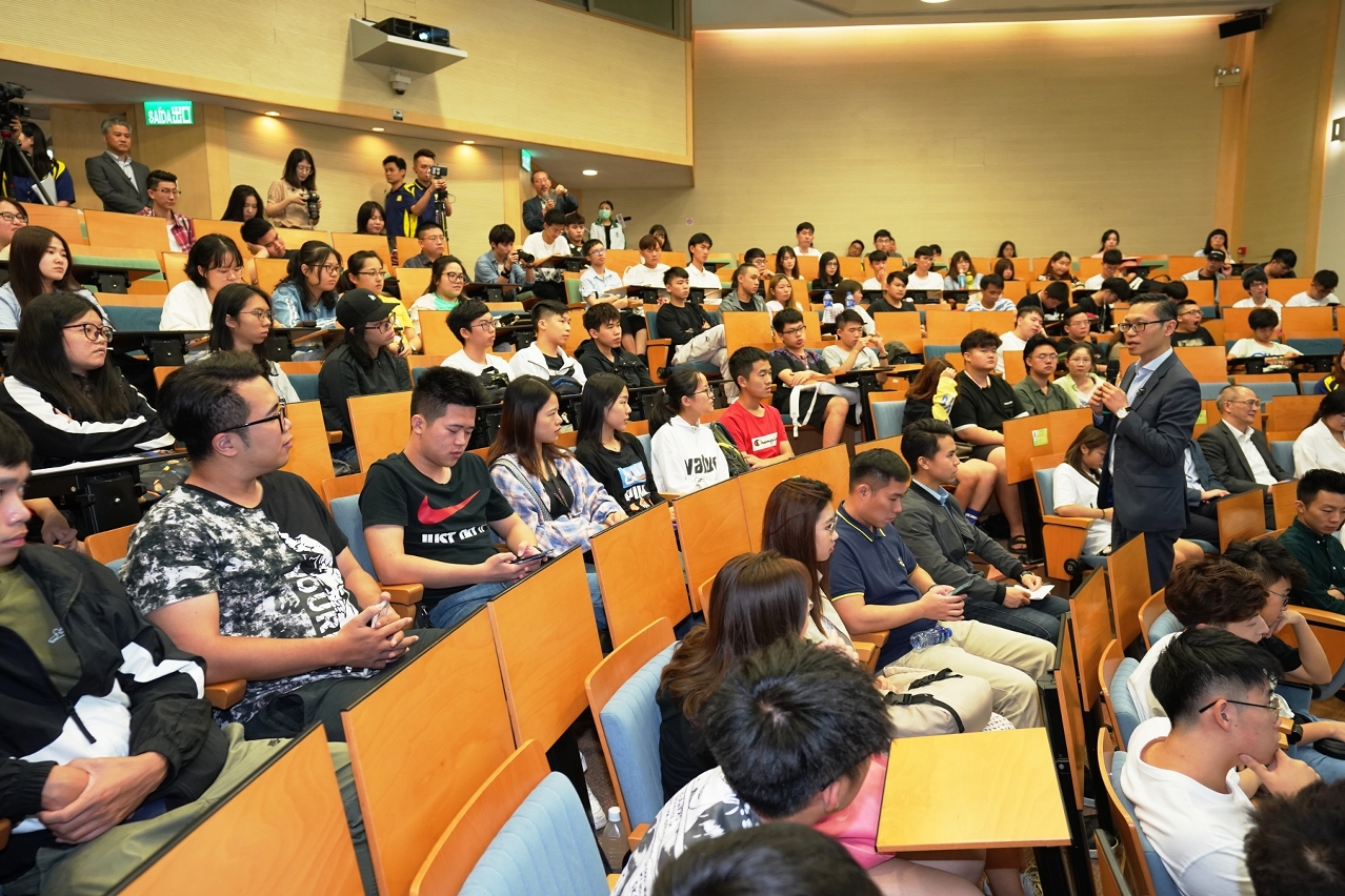 交流会于10月24日下午在澳门城市大学演讲厅进行,司警局局长薛仲明、副局长陈坚雄与澳门城市大学校长张曙光、校董会秘书长陈俊拔,以及该校近150名师生互动交流。