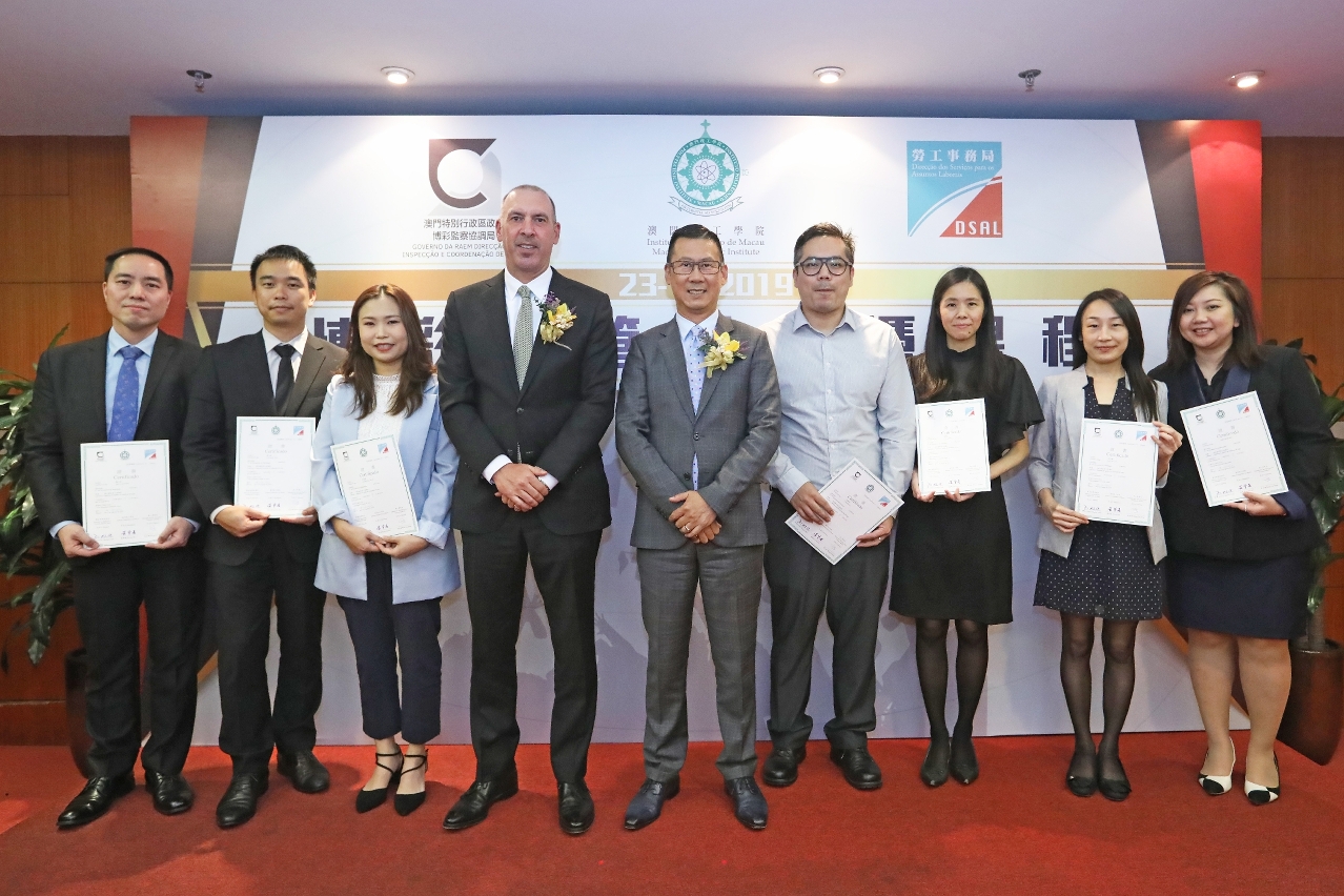 “博彩机管理文凭课程”是博监局、劳工局和理工学院合作开办的课程,目的是培养博彩机技术方面的本地管理人才,支持本地雇员向上流动。课程包含“博彩科技”、“角子机管理”、“博彩法”、“管理学导论”、“商务沟通与公共管理”以及“项目管理”等科目。本期“博彩机管理文凭课程”从2018年5月开课,到2019年7月结束。理工学院博彩旅游教学及研究中心主任王长斌在致辞中赞扬学员兼顾工作、学业及家庭三方面,努力进取,克服困难,在一年多的时间里风雨兼程,圆满完成学业。毕业学员表示学科知识有助拓阔他们在业务营运工作中的视野,提升工作绩效和管理团队的能力。